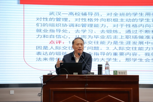 在互动交流环节,现场气氛热烈。与会教师结合一线工作实际,围绕学生成长过程中的六大关键议题——从入学适应、学业规划到升学就业抉择、辅导员沟通技巧等,与张金元展开深入交流,共同探索“问题导向、精准施策”的育人新路径。