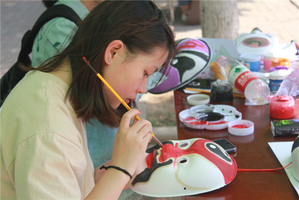 图为学生正在彩绘脸谱 摄影:文斌