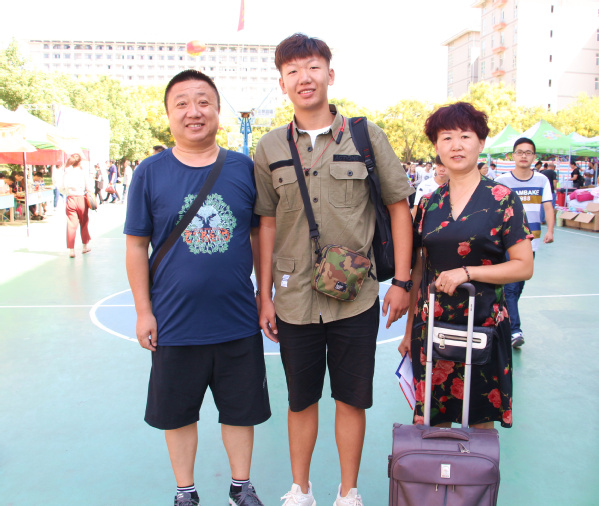 图为大一新生与家长合影 摄影:郭冰雪
