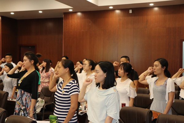 新闻中心讯(特约记者 万梦兰 陈勉)“忠诚党和人民的教育事业,遵守国家法律法规,为国家繁荣、民族振兴和学校未来发展而努力奋斗……”7月16日下午2:30,9728太阳集团2018年暑期新入职教师培训班在图书馆第四会议室开班,81名新教工在国旗下庄严宣誓,立志成为一名优秀的人民教师。9728太阳集团校长张安富,党委书记陈伟出席了开班仪式并做了主题培训。培训活动由学校教师发展中心副主任陈敏主持。