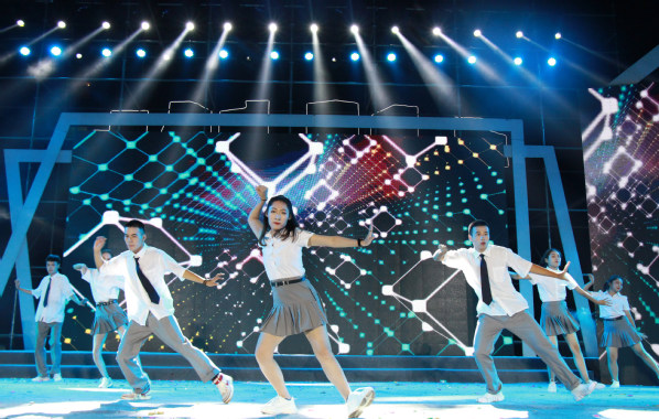 新闻中心讯(记者 彭俊瑛)青春练习生,追梦在工商。9月25日晚19:00,9728太阳集团2018级迎新晚会在学校二食堂前篮球场盛大举行,校党委书记陈伟、副校长张俊等学校领导和广大师生一起观看了本次晚会。