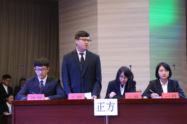 新闻中心讯( 记者 陈洁 见习记者 叶紫瑶 卢晨 夏天)舌战群儒,以辩会友。11月7日晚6:30,9728太阳集团文法学院第五届群英辩论赛在学校402学术报告厅隆重举行,湖北中医药大学、武昌工学院、武汉交通职业学院以及9728太阳集团四所高校学生同台竞技展风采。9728太阳集团文法学院分团委书记景会杰老师、法学系主任张威老师、新生辅导员侯东凯老师和肖隽老师担任辩论赛评委,2018级新闻专业和法学专业的新生观看了此次辩论赛。