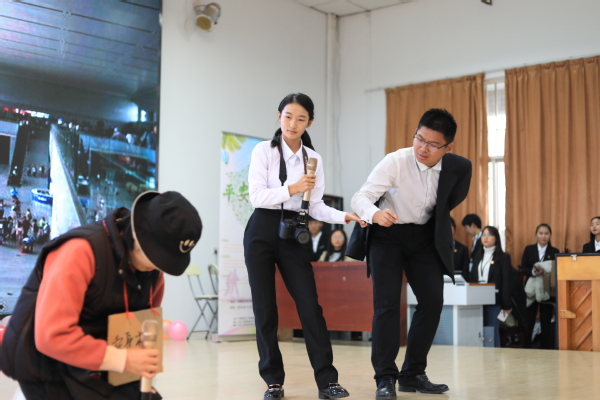图为物流学院和文法学院的情景剧“车站里的那些事” 摄影:王兴