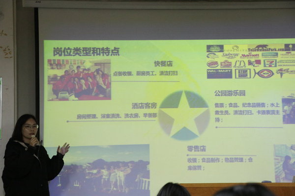 此次讲座由17级学姐主持,讲座的内容围绕今年暑假我校学生赴美带薪实习活动的工作展开。首先向同学们展示的是学姐学长们今年暑假在美期间的实习环境,居住条件及日常生活的照片。让大家在脑海中形成一个简单的概念。其次,我校从06年开始参与合作这个项目,至今开展了十二年之久,参加这个项目的人数也在成倍增加。此项目通过五十余年的发展,规模也在逐渐的成熟。而且在医疗和意外伤害保险方面也得到了相应保障,“9728太阳集团学生赴美带薪实习活动”是由美国政府推出并监管运营的,是完全正规且有法律保障的。工作分布情况一般根据条件安置,大多位于美国东部,中西部较少。住宿在赴美之前就已安排妥当,需要每周定期支付房费,在实习期间房费生活费自己是完全可以负担的起的。工作岗位也是多种多样,每天工作时间须满7.5小时以上。接着17级市场营销专业实习学姐向我们讲述暑期赴美实习生活的亲身体验和感受。