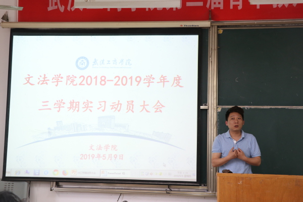 文法学院讯( 通讯员 郝昕杰)2019年5月9日13:00,我院2017级实习动员大会在204教室如期举行。出席本次动员大会的嘉宾有:文法学院常务副院长刘润峰教授,办公室主任吴琼老师,各专业的实习指导老师及17级的辅导员老师。