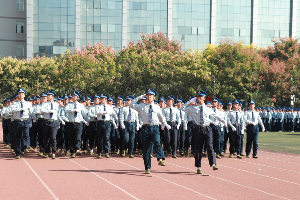 9月23日上午9时,新生军事汇演正式拉开了序幕。首先是各个军训连队的分列式表演,新生们步履铿锵,目光坚定,身姿挺拔,充满了青春向上的活力。走齐步,他们整齐划一;走正步,他们步履铿锵;敬军礼,他们动作标准;喊口号,他们声音嘹亮。接下来是军体拳表演,文法学院的新生加入打军体拳的行列,他们的每一招都猛如白虎,他们每一式都矫如游龙,他们挥洒着汗水,动作标准的完成了整套军体拳。他们用十五天的汗水,在庆祝新中国70周年华诞之际,向祖国深情告白,也对自己半个月以来的军训旅程交了份完美答卷。“五星红旗,我为你自豪。”他们以一首《红旗飘飘》为祖国庆生。激昂的歌声中,爱国之情激荡在典礼现场每一位师生的心间,新生们还排列方阵摆出了“2002—2019”、“工商、”“中国”等字样为新中国成立70周年献礼!用青春为祖国唱出了一首激扬赞歌。此次汇演结束,文法学院的小萌新们就告别了艰辛的军训生活,即将迎接那多彩、又充满挑战的大学生涯。十五天的艰苦训练、十五天的点滴辛酸、十五天的朝夕相处,十五天的汗水与骄阳这些都会成为他们大学生活篇章里美好的一页。