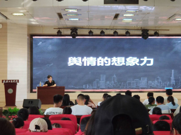 今天的讲座由我院18届新闻专业的优秀毕业生章崴学长重返母校为同学们讲述。他在校期间曾在湖北网络社会发展研究中心工作,服务中央及省市网信部门,所撰写的舆情报告多次获得各级领导人批示。在校期间获得湖北省“长江学子”、湖北省大学生科研成果一等奖、湖北省互联网舆情工作先进个人等荣誉称号。讲座开始章崴学长进行了自我介绍,为同学们讲述自己重回母校的心情和期间经历。他谈到大学期间对自己影响深刻的书封面上的一句话:写给开始筹划一生的年轻朋友们。这也为初入大学时期的自己找到了方向——筹备的自己。章崴首先谈到想象力,比如他在我校参加学习组织的经历,经过在校社联里一年的历练,对自己的性格有很大的历练;先后在四家门店进行兼职,在这过程中让章崴明白只要想尽一切办法就能克服困难,人生就要无所畏惧。这些经历让他的性格中多了一些包容以及如何了解别人的想法和把握对方的性格。随后他为同学们讲述:舆情给人们观察社会的视角,通过网络空间,更多网络的特性、更多人的特性。普通青年在上微博,进步青年在上时尚强国,二次元青年在上B站,时尚青年在抖音,奋斗青年在上黑客,这是长时间以来他对网络社会深刻的理解。当前主要有这样三个形势:传统媒体逐渐丧失话语权;移动互联,“双微”成为网络舆论主要载体;网络成为扩展政民互动的新渠道。只要同学们不断地去尝试就会发现自己在不同道路上的价值,对于同学们而言只有自己不断地探索,充分发挥自己的想象力,才可以实现自己的价值。