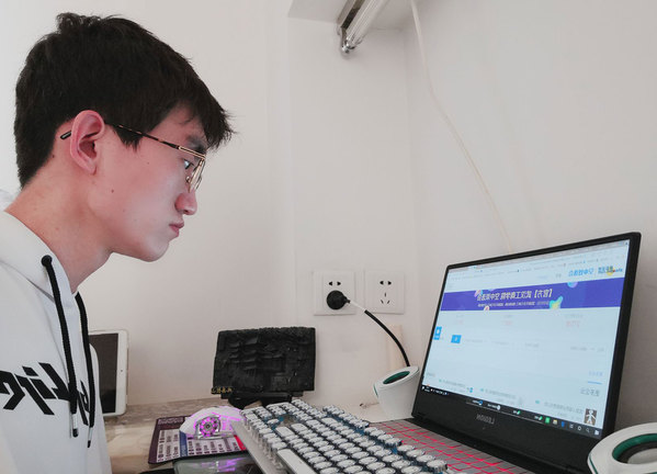 电子商务学院2020届毕业生郭文兵在准备视频面试(摄影:郭文兵)