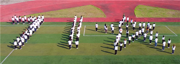 图为学生摆出“71”“五角星”队形献礼祖国71岁华诞 摄影:王锦丰