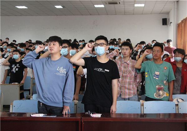 图为党委书记刘生元带领同学宣誓 摄影:冯哲昊