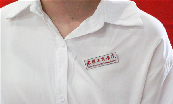 图为新生佩戴校徽 摄影:施柳
