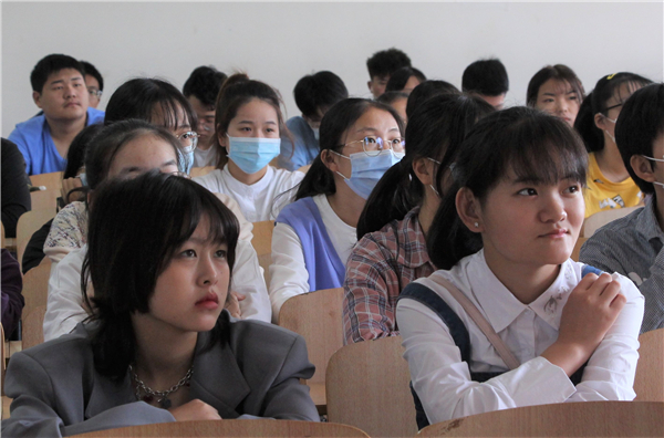 图为新生在分会场认真观看直播 摄影:施柳