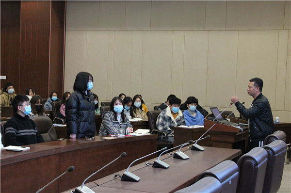 图为管根稳正在回答学生提问 摄影:冯哲昊