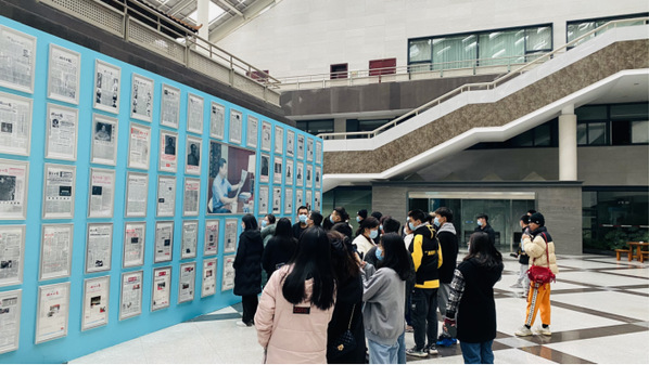 图为师生参观评报栏 摄影:万瑾昕