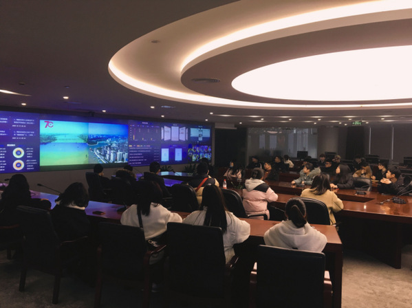 图为全媒体指挥中心的实地教学现场 摄影:万瑾昕