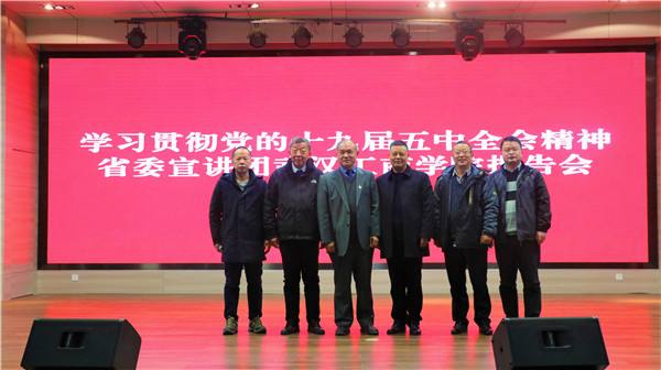 万美容教授介绍了全会的基本情况,指出这次全会是我们党在全面建成小康社会胜利在望、全面建设社会主义现代化国家新征程即将开启的重要历史时刻召开的一次十分重要的会议,是在我国将进入新发展阶段、实现中华民族伟大复兴正处于关键时期召开的一次具有全局性、历史性意义的会议,习近平总书记的重要讲话以及全会取得的重要成果、作出的重大部署都具有重大而深远的意义。