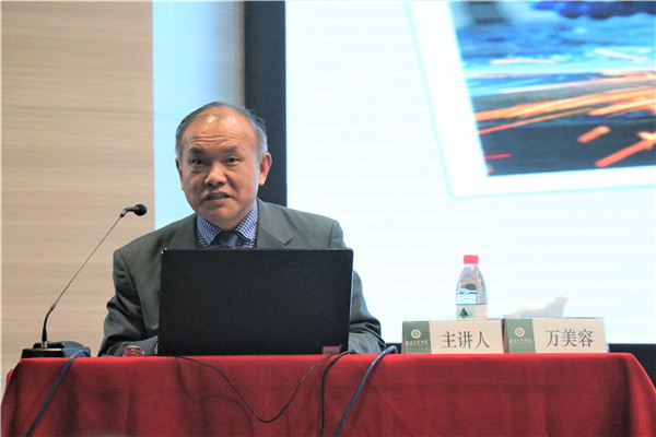 图为万美容教授正在做报告 摄影:黄娟