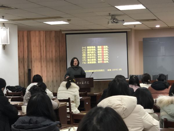 孔老师生动详实的讲解和深入剖析让老师们在学习的同时又不断反思。孔老师还反复强调道:“吴岩司长《建设中国金课》的‘两性一度’标准,例如‘高阶性、创新性、挑战性’,一定要好好理解,这类文件一定不能看过就结束了,一定要落到你本子的每一个细节,包括教学创新比赛!”