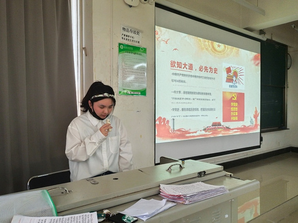 新闻党支部(记者:刘晓彤)开展党史学习,就是要以史为镜、以史明志,把苦难辉煌的过去、日新月异的现在、光明宏达的未来贯通起来,在鉴往知来中砥砺前行,在乱云飞渡中把准航向,共同创造新的历史伟业。5月31日中午12点50分,我校文法学院刘雯婧同学在综合楼307开展“党史永不能忘记”主题宣讲。