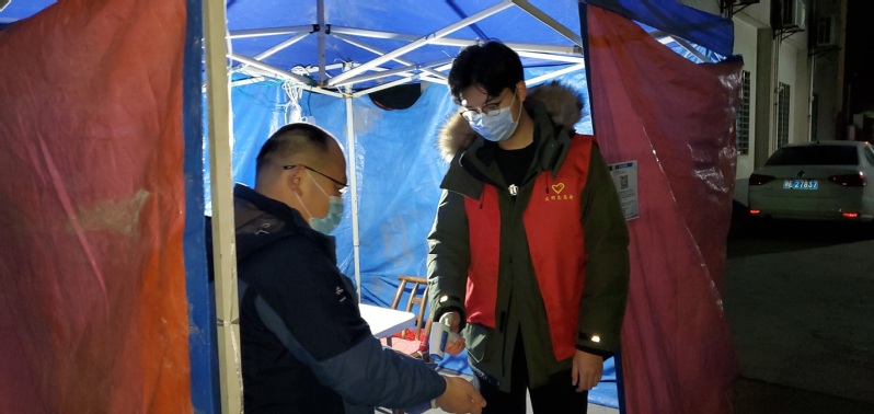 (严书格参与疫情防控志愿者工作)