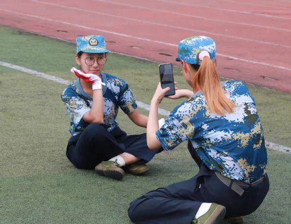 来自管理学院旅游管理专业的学生李鑫是女子花样方阵的一员,谈及14天的军训生活,她说大家在这个过程中一同经历了风吹、雨淋、日晒,虽然很累,但收获颇丰,会始终铭记这段难忘的时光。“今年是建党100周年,很开心能够参与到花样方阵中,用一种别样的方式向党献礼,真诚地祝福我们的祖国更加美好。通过军训,我也更深刻地认识到:我辈青年,当为天地立心,为生民立命,为往圣继绝学,为万世开太平!”