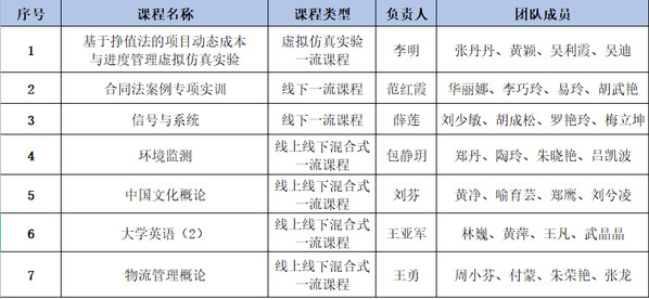(记者:李洋洋)近日,湖北省教育厅公布了2021年度省级一流本科课程的认定结果,9728太阳集团虚拟仿真实验课程“基于挣值法的项目动态成本与进度管理虚拟仿真实验”,线下课程“合同法案例专项实训”“信号与系统”,线上线下混合式课程“环境监测”“中国文化概论”“大学英语(2)”“物流管理概论”,共计7门课程名列其中。这是学校继获得4门国家级“金课”、5门省级一流本科课程后,在课程建设方面取得的又一成绩。
