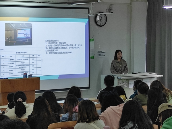 “今年上半年,在充分的比赛实践锻炼中,我发现了世界的广阔和自己的诸多不足。目前我从视频、动画到平面设计各个类别进行,力争从多个维度提升自己综合实力。在此期间我校也有许多优秀的学生响应党支部号召开展了各式特色活动,向党看起,在时代创新中学习,争做优秀青年标兵。”袁萌梓还分享了许多优秀学生的活动案例与创意作品,如广告网媒联合学生党支部学生制作的具有中国特色的剪纸,书法与刻章。她鼓励在场所有积极分子能够独立思考,勇于创新,结合自生在专业中的技能所长,多参与社会实践与比赛。