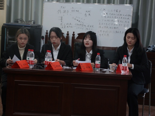 文法新媒体中心讯(记者:连玉欣)为培养大学生的独立思考能力,提高学生的口才艺术修养,同时推进同学们对专业知识的掌握。由文法学院法学学生党支部和弘博法学会联合举办的“案例实训课堂”于12月2日14:30在综合楼707教室成功举行。法学专业李巧玲老师、郭颂彬老师担任本次实训课程的评审,2021级法学专业全体同学到场学习。