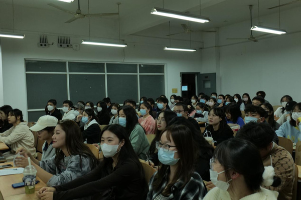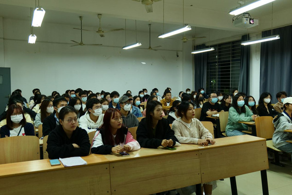 新闻党支部组织委员郭子涵要求在座的同学们多思考、明确入党动机,最后用激昂的语气对台下的各位做出鼓励:“不要忘记自己最纯粹的、到这里来的原因!”