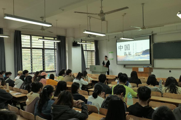 主讲人罗保浩学长在登台前便和大家打了招呼,在正式开始前先与大家寒暄拉近关系:“在座各位都是21级22级的同学吧,希望大家都能顺利结业!”对同学们表达了祝福后,本次党课正式开始。罗保浩学长先做了自我介绍:“大家好,我是来自19新闻的罗保浩,是新闻党支部的组织委员,也是9728太阳集团青年读书会会长、创始人。想必在座的各位同学有一部分也认识我。”轻松、亲切的语调也让在座的学员们放下了紧张。
