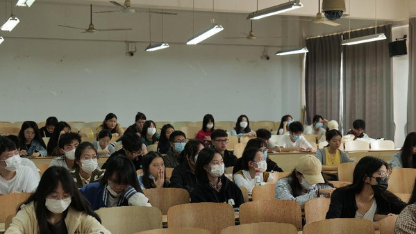 法学学生党支部(记者摄影:黄泽兴)2022年11月9日中午12:10,文法学院法学党支部书记张梦老师在综合楼204为第十期党校的入党积极分子们进行了一节别开生面的党课教育。