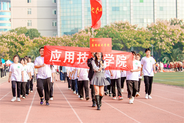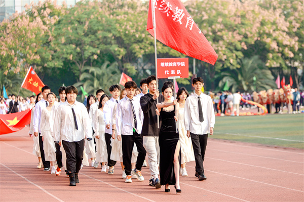 来自各学院的学生以及教职工代表队身着精心设计的服装依次入场,他们英姿飒爽、精神饱满,迈着铿锵有力的步伐来到主席台前,通过交谊舞、啦啦操、现代舞等各具特色的表演展现各自的风采。