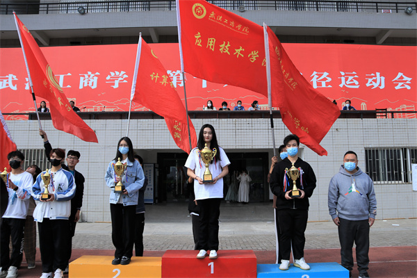 图为经外学院、物流学院、人工智能学院、环生学院、继教学院荣获体育道德风尚奖 摄影:江秋艳
