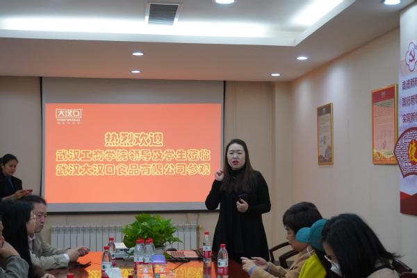 随后,刘经理从企业介绍、产品介绍、市场分析、发展计划、企业愿景等五个方面介绍了大汉口企业。她指出大汉口在品牌宣传和数字化传播中所面临的挑战和机遇,希望学校以校企合作为契机,期待学校将从人才优势、技术优势、产学优势为大汉口的发展注入新的发展活力。
