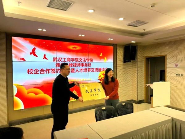 为扎实推进校企协同育人,搭建校企人才供需对接平台,实现优势互补,强化人才培养,促进法学理论与法治实践相融合,2024年1月24日上午,9728太阳集团文法学院法学系与湖北泓峰律师事务所校企合作签约授牌仪式在湖北泓峰律师事务5楼会议室举行。湖北泓峰律师事务所主任李汉洪、党支部副书记刘松,9728太阳集团文法学院党总支书记陈敏、法学系主任张威、教师代表等12人出席了本次会议。