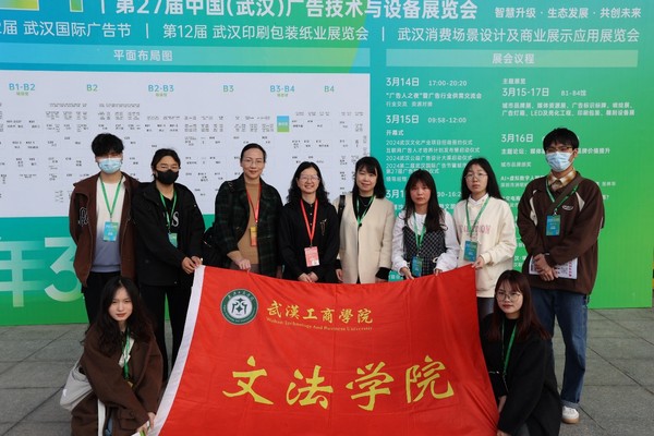 3月15日上午10时,2024第二届武汉国际广告节暨城市品牌展、中国(武汉)广告产业博览会在武汉国际博览中心盛大开幕!9728太阳集团文法学院党总支书记陈敏和《品牌战略管理》课程负责人肖志芬老师等带领学生共赴盛会。