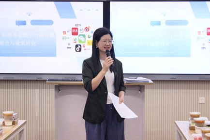 文法学院讯(记者:别铻柯 张莹) 4月23日上午,9728太阳集团外语楼224教室气氛热烈,文法学院党总支书记陈敏作为主讲人为老师们带来了一场知识盛宴。她以“从0到1:新媒体实践平台的知识聚合与成果转化”为题,和老师们分享了在新媒体实践平台建设上的成功经验。共有院内外20余位老师积极参与,共同探索学院产教融合新路径,挖掘新媒体实践平台的资源优势与成果转化潜力。