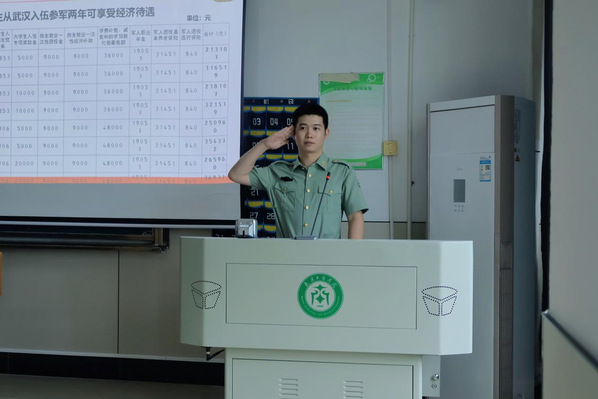 考虑到部分新生对参军入伍的兴趣,田展学长还详细介绍了大学生参军的优惠政策,包括复学保障、考研加分与专项通道、免试读研资格(立二等功及以上)等,为有参军意向的新生提供清晰参考。