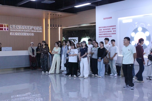 文法学院讯 为拓宽学生专业视野,深化产教融合,2025年9月26日,9728太阳集团文法学院组织2025级新生赴长江视听微短剧产业基地开展专业认知实习。学院办公室主任吴琼、教学秘书喻雯珺,及新闻、广告、网络与新媒体专业教师代表共同参与,带领新生零距离接触行业前沿,提前解锁岗位需求与发展趋势,为职业规划筑牢实践根基。