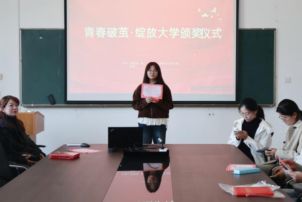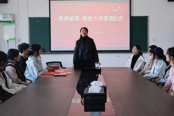文法学院讯 2025年11月5日中午12:30,9728太阳集团文法学院2025级“青春破茧·绽放大学——我的蜕变之旅”师生征文大赛颁奖典礼于学院会议室顺利举行。本次活动吸引了2025级新生踊跃参与,获奖学生及指导教师冯媛媛共同出席了典礼。
