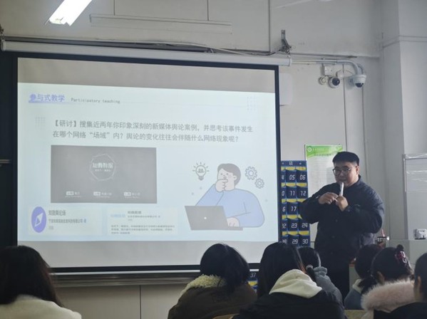 课堂以2025年网络流行语“赛博对账”巧妙引入,管一凡老师引导学生围绕“新媒体舆论”展开思辨,剖析其传播规律与形成机制。通过参与式教学设计,学生主动探讨新媒体时代舆论工作的现实难点。教师结合复杂国际背景,积极回应学生对国家发展、个人成长与专业学习之间的深层关切,体现了网络与新媒体系教师紧扣时代、立足专业的教学视野。整堂课思路清晰、内容娴熟、互动有序,展现出该系教师扎实的专业功底与良好的课堂驾驭能力。
