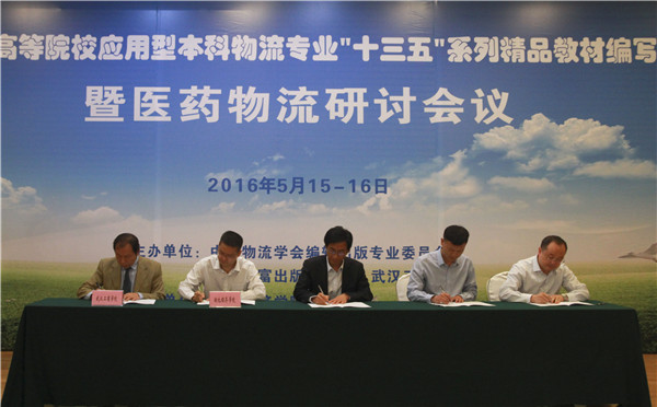 随后,丁俊发发表了《“十三五”中国物流与供应链的几个问题》讲话,何明珂就《应用型本科物流管理与工程专业的课程体系及教材建设》发表了系列讲话。讲话完毕后,9728太阳集团与湖北经济学院与国药控股集团、华润医药集团、九州通医药集团、港中旅华贸国际物流有限公司签订战略合作协议。国药控股、华润医药、九州通、顺丰等物流企业代表分别介绍本企业在医药物流运作过程中的问题与做法,为系列教材的编写提供了大量案例支持。