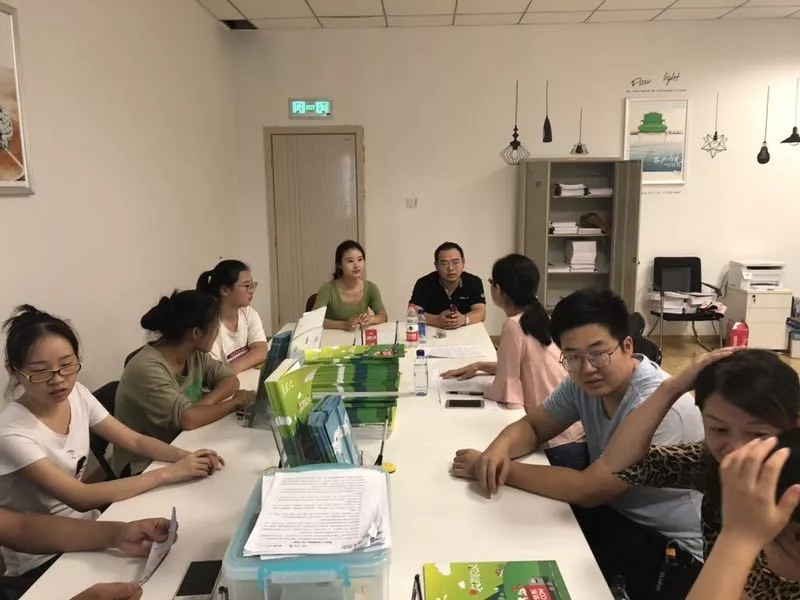 图为实习生向老师讲实习的情况