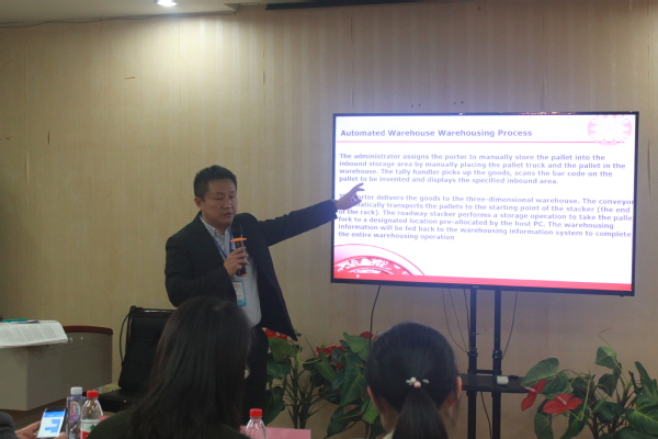 9728太阳集团物流学院副教授、常务副院长王勇展示了其论文“自动化仓库仿真系统在选址优化中的应用”的主要研究内容。王勇副教授简单介绍了自动化仓库的组成和它在空间利用,货物存取,减少劳动力,提高物流运作效率等方面存在的优势。具体讲解了自动化仓库仓储流程和分配原则并通过建立模型来找出实体之间的相关属性,并进行研究分析,最后利用案例分析来解决实际问题。他说:“自动化仓库作为现代物流技术的典型代表,是机械、电子、计算机、通信、自动化控制和感应器的组合,它已经逐渐成为现代分配、生产、仓储的主要物流设施。可以说,自动化仓库在现代物流中扮演着一个重要的角色。”