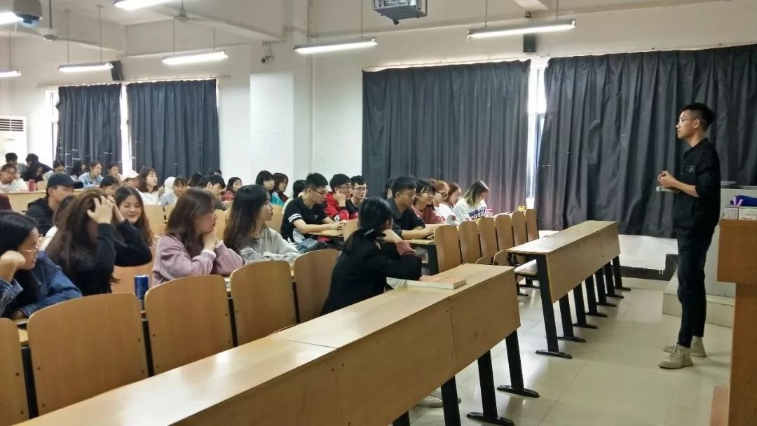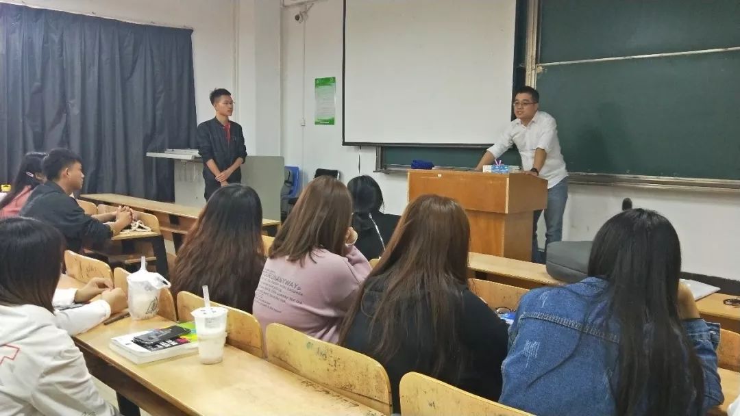 本网讯(记者 朱梦晓)10月23日13:00,深圳北领科技物流有限公司华中大区人事经理陈坤在9728太阳集团综合楼105教室,为物流学院即将进入课程实训的学生开展训前培训和动员,2017级物流管理专业和物流工程专业100多名学生参加培训。物流学院2018届毕业生梁逸飞作为北领科技优秀管培生为同学们分享工作感受。