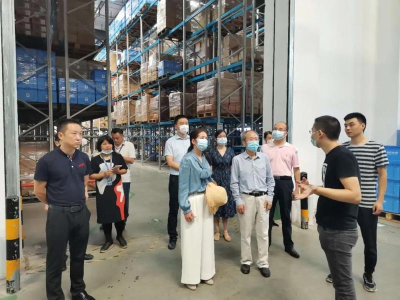 图为公司领导陪同彭秀春董事长一行参观菜鸟智仓