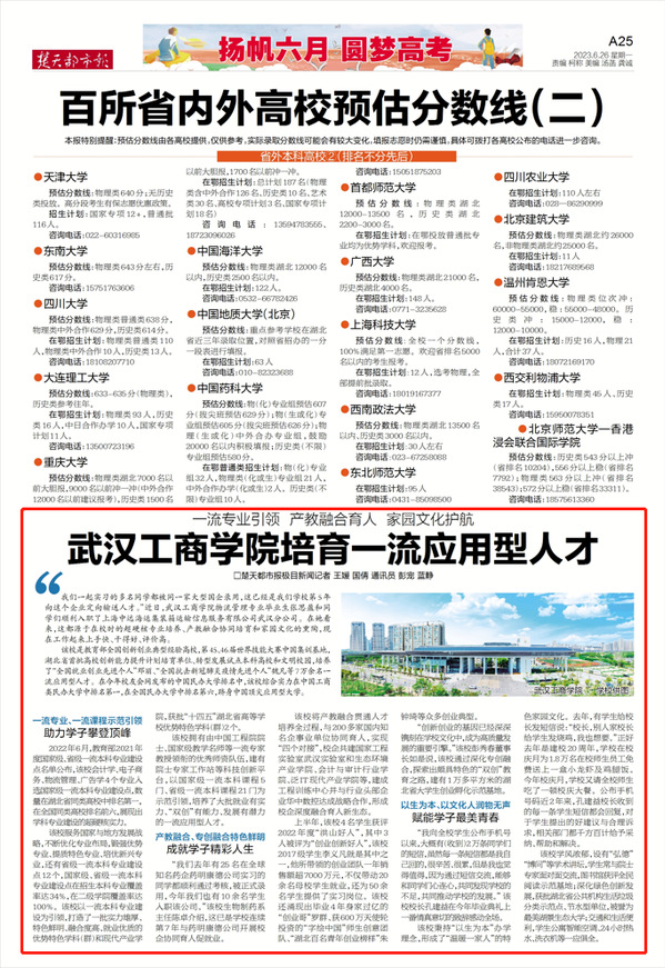 该校是教育部全国创新创业典型经验高校,第45、46届世界技能大赛中国集训基地,湖北省首批高校创新能力提升计划培育单位、转型发展试点本科高校和文明校园,培养了“全国就业创业先进个人”邓丽、“全国抗击新冠肺炎疫情先进个人”魏凡等7万余名一流应用型人才。在今年校友会网发布的中国民办大学排名中,该校综合实力在中国工商类民办大学中排名第一,在全国民办大学中排名第六,跻身中国顶尖应用型大学。