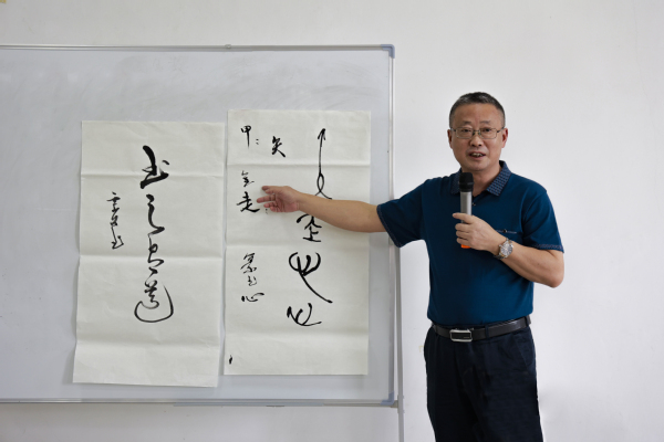 图为左宗文副校长授课书法 摄影:芮雨欣