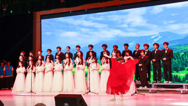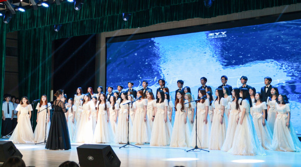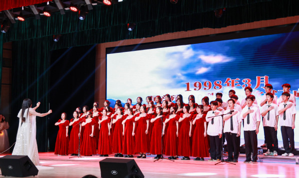 来自全校各二级学院的近千名学子们身着整齐的服装,面带微笑,用清澈且坚定的青春之声,唱响了《少年中国说》《错位时空五四特别版》《新征程》《灯火里的中国》等12首震撼激扬的歌曲,大家配合默契、歌声嘹亮、情感真挚,用歌声传递着“五四精神”,用旋律诠释着青春力量,展现了新时代青年的热血风采,为现场观众奉上了一场精彩的视听盛宴。