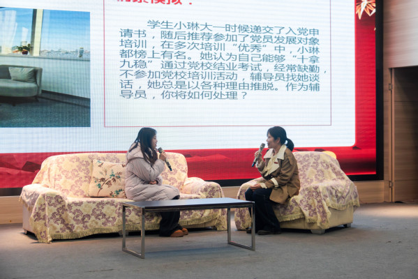 在比赛中,来自各二级学院的10位辅导员们思路清晰、逻辑缜密、分析合理、处理得当,表现出了优良的政治素质、理论水平、专业素养和职业能力:肖隽老师在面对学生毕业实习碰壁案例时,思路清晰,从多方面分析这个学生所遇到的难题,既分析了外部环境,又分析了学生自身的问题所在,深入浅出,为学生提供了切实可行的帮扶方案;龙黎明老师在处理学生问题时注重循序渐进和加强对学生教育的引导,尤其在面对学生情绪波动较大的问题时,特别提出了要关注该学生的社交媒体,随时关注其思想动态,只有了解学生真实面临的问题,帮助学生厘清问题所在,才能有效掌握处理问题的主动权;程琬涵老师在谈心谈话环节遇到了一位遭到孤立的学生的家长,这位“家长”一上来便气势汹汹向老师问责,后面更是对老师“百般刁难”,这无疑给辅导员老师的疏导工作增加了难度,但程琬涵老师的表现可圈可点,首先安抚了家长的情绪再对问题进行处理,整个过程,随机应变且十分有耐心,展现了她敏锐的问题分析能力、灵活的沟通技巧和良好的心理素质……